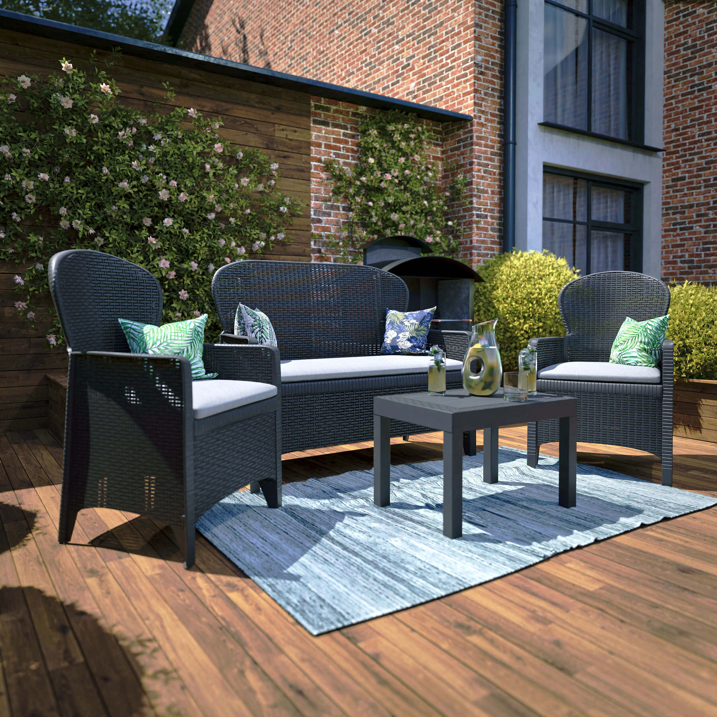 Kávé a kertben a barátokkal, vagy esetleg egy pillanatnyi kikapcsolódás a családdal, a Ziboni kerti bútorkészlet tökéletes lesz erre a feladatra. A készlet tartalmaz két karfás fotelt, egy kényelmes kanapét és egy praktikus asztalt. A bútorok tökéletesek a teraszra, erkélyre vagy kertre.