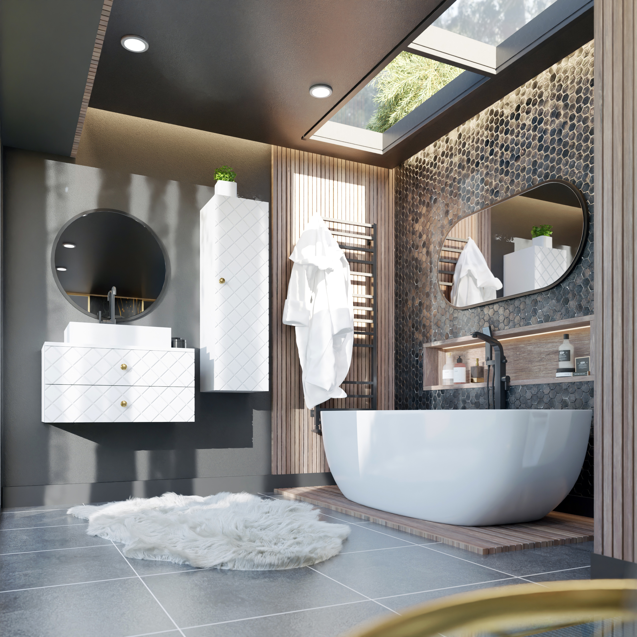 Egy fürdőszoba sem teljes tükör nélkül. Kerek formával és stílusos fekete kerettel rendelkező dizájnunk tökéletesen kiegészíti a pompával teli belső tereket.