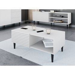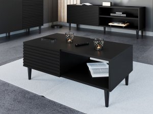 A modell fa, kúpos lábakra van felszerelve, amelyek jelentősen megkönnyítik a padló tisztítását. Tárolóhely is van benne nyitott és zárt polc formájában. Dohányzóasztalnak nincs fogantyúja, és a "push to open" rendszernek köszönhetően nyílik.