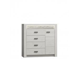 Az Indianapolis I17 komód egy modern, hagyományos színvilágú komód. Az Indianapolis komód 109 cm széles és 104 cm magas, és akár 4 fiókkal és egy előlapos szekrénnyel van felszerelve. A komód szilárd szerkezetű, durva teteje és oldalai. Érdekes megoldás a természetes csiszolt fából készült betét kiemelésének lehetősége LED világítással.