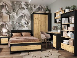 A Spot II ifjúsági bútor hat elemből áll, amelyek tökéletesen illeszkednek a tinédzserek igényeihez. A kétajtós gardrób rengeteg tágas polcot és fogassínt kínál. Rendszerezi gyermeke összes ruháját és kiegészítőjét. A könyvespolc, valamint a függesztett polc tökéletes hely könyvek, ajándéktárgyak vagy iskolai érmek és kupák tárolására.