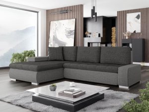 Sarokgarnitúra alvás funkcióval Orkan Mini Sale egy szép bútor, amely kisebb helyiségekben is jól fog szolgálni. Sarokgarnitúra "L" betű alakú, és szabadon álló modell. Előnye az említett alvási funkció és egy ágynemű tartály.