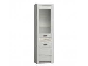 Az Indianapolis I04 L egy olyan modell, amely tökéletesen illeszkedik a mai belsőépítészeti trendekbe. Ez a vitrin üveg felső előlappal van felszerelve, amely lehetővé teszi dekorációs elemek és edények vagy ajándéktárgyak kihelyezését, valamint egy teljes alsó szekrény polccal. A hely tömör forgácslapból készült, PVC furnérral.